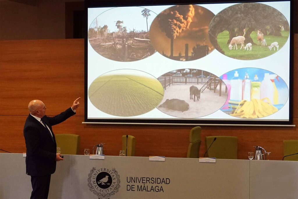 Durante la jornada, Antonio Villatoro, presidente de la Real Academia de Ciencias Veterinarias de Andalucía Oriental, ofreció una ponencia titulada «Desafíos y Oportunidades del Enfoque One Health en el Ámbito Local», en la que abordó los retos actuales y futuros de implementar esta perspectiva en la ciudad de Málaga. Su intervención subrayó la necesidad de una colaboración interdisciplinaria y el papel crucial de las políticas locales para el éxito de esta iniciativa.